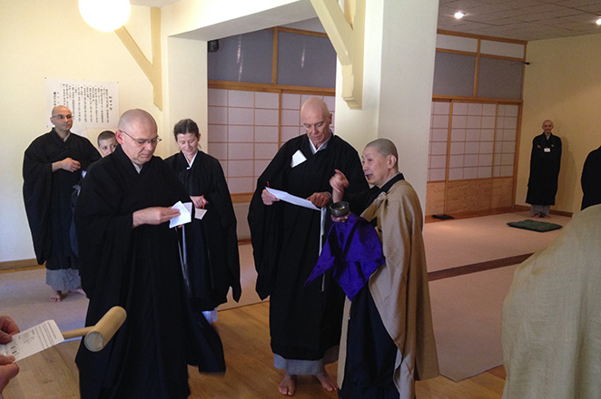 Rev. Dosho Saikawa, the director of Soto Zen Buddhism South America Office, visited Europe from 22nd June for 1 week. He was invited as Jokeshi, an advisor for the Abbot at the Kessei ceremonies at Ryumonji, France on June 23rd and Kosetsuji, Switzerland on June 24th. For Kosetsuji it was first Kessei ceremonies.
