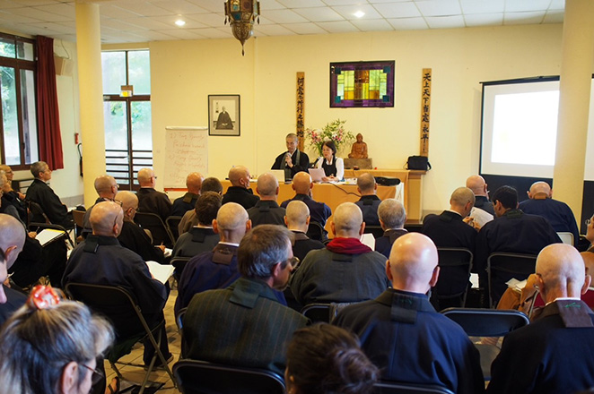 Sokanbu annual seminar was held at La Gendronniere in France from Saturday 19th to Sunday 20th October. We invited as lecturer Professor Kiyozumi (Seijun) Ishii from Komazawa University in Tokyo, who specializing in the study of Zen Buddhism and Dogen’s teachings. Following the theme “Recent Trends and technological instruments in the study of the doctrinal foundation of Sōtōzen teachings”, he introduced the history and contents of Sotozen studies, and the practical study method. We also read one of the Shobogenzo fascicles “kajō” by using digital tool like The SAT Daizokyo Text Datebase , Digital Dictionary of Buddhism and so on. This seminar was opend to public, there were about 100 participants.